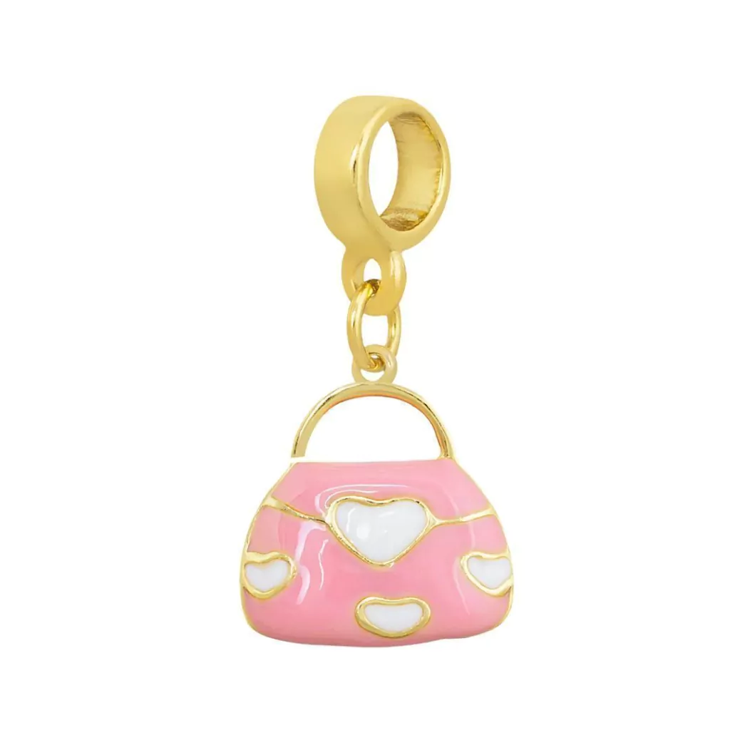 Berloque Infantil bolsa de luxo resinada. Semijoia banhada á ouro 18k revestida com uma camada exclusiva de verniz antialérgico.O berloque não acompanha a pulseira.