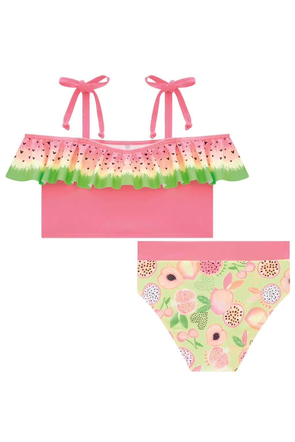 Biquíni Infantil em Malha Uv Dry Estampa Frutas Tropicais com Proteção Uv 50 + by Infanti